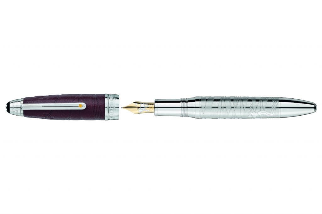 The Meisterstück Le Petit Prince Precious Resin Le Grand and Meisterstück Le Petit Prince Precious Resin Classique both share a cap and barrel that are made from brown precious resin which works starkly against the platinum-coated fittings. A symbolic figure in the story, a sheep is engraved on the 14K gold nib of the writing instrument. With the Meisterstück Le Petit Prince Doué however, the precious brown resin barrel is contrasted with desert dunes and the aviator’s airplane against the platinum coated cap, with a delicate sheep on the 18K champagne gold nib. Similarly, the Meisterstück Le Petit Prince Solitaire Doué Le Grand Edition pairs its brown leather cap etched with the same design of the dunes and the aviator’s airplane as the Meisterstück Le Petit Prince Doué.
