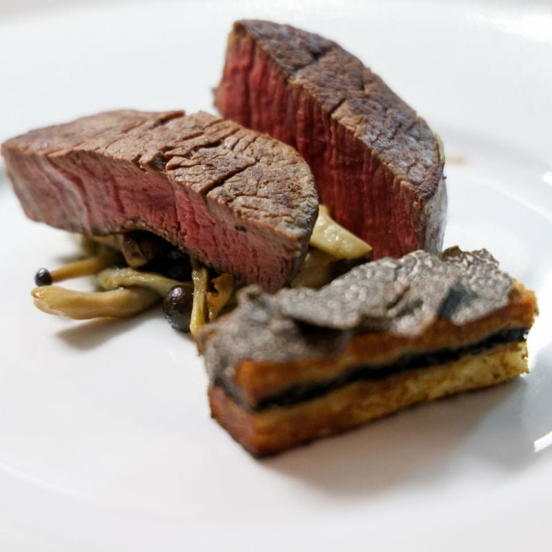 Truffle Brioche Pudding, Oxtail Reduction