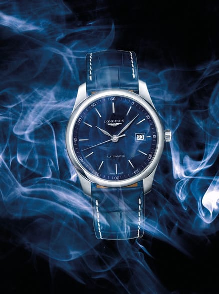 A sunray dial in vibrant blue takes centre stage in this Longines Master automatic timepiece with date. Smart enough to be worn for formal events but also simple enough to be an everyday timepiece, this 40mm steel watch is accented with slim hour markers and leaf-shaped hands. Available with a steel bracelet or blue alligator strap.