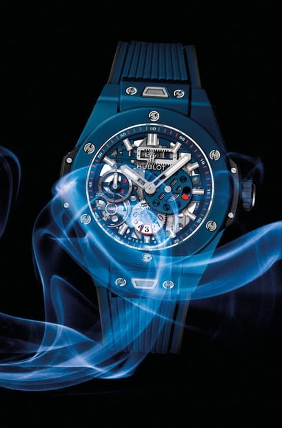 Since it was introduced in 2016, the Hublot Big Bang Meca-10 has charmed us with its striking, quirky aesthetics – its skeletonised, manually wound movement is inspired by old-school Meccano building blocks. (If that doesn’t impress you, its 10-day power reserve should.) Following versions in materials like black ceramic and titanium, the Meca-10’s latest incarnation features a 45mm case crafted from deep blue ceramic.