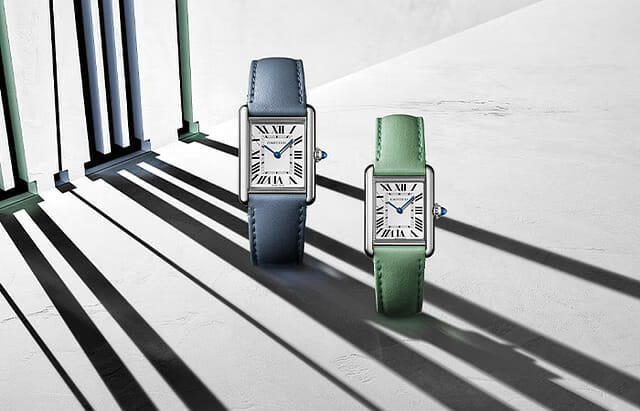 When the quartz crisis hit the industry in the 1970s, Cartier responded by launching the Tank Must de Cartier, its first industrially produced, non-precious Tank. Now the collection is introducing versions offering the new SolarBeat photovoltaic movement with a lifetime of 16 years. Perforations in the Roman numerals let through sunlight to power it up.