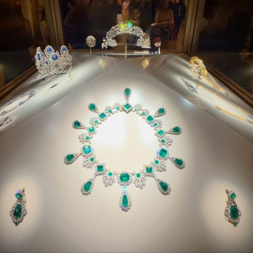 The second, an emerald necklace and earring set that once belonged to Marie-Louise, Napoleon Bonaparte’s second wife, joined the museum’s collection in 2004, acquired for 3.7 million euros ($4.3 million).