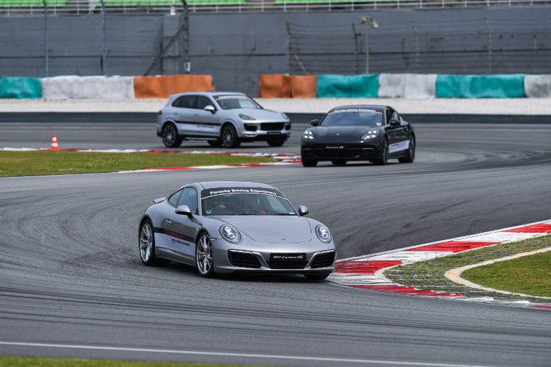 Inside my 911 Carrera 4S, a quick glance at the tachymeter told me I was already at 200km/h and the first corner was fast approaching. Following Bamber’s lead, I braked hard, slowly eased off the brakes and turned into the corner. The g-force pushed me to one side but holding on to the steering, I looked to the apex of the turn. “Hit the apex,†Bamber’s voice trailed from the radio and so I touched the curb and, as I came out of the corner, slowly squeezed the throttle until the car straightened out and, then, pedal to the metal. The growl from the engine right behind me was glorious. Rinse and repeat, the 5.5km of Sepang seemed way too short in my adrenaline-filled state and, before I knew it, I was coming out of the last corner onto the final straight and, yes, I had an enormous grin as I crossed the finish line.