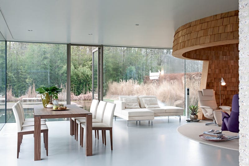 Yet another Belgian-designed piece of furniture, Christophe Giraud fantastically combines leather and wood into a unique and timeless table-companion. These chairs are perfectly suited for elegant dining areas and even come with multiple colours and specifications to match the table and its surroundings.