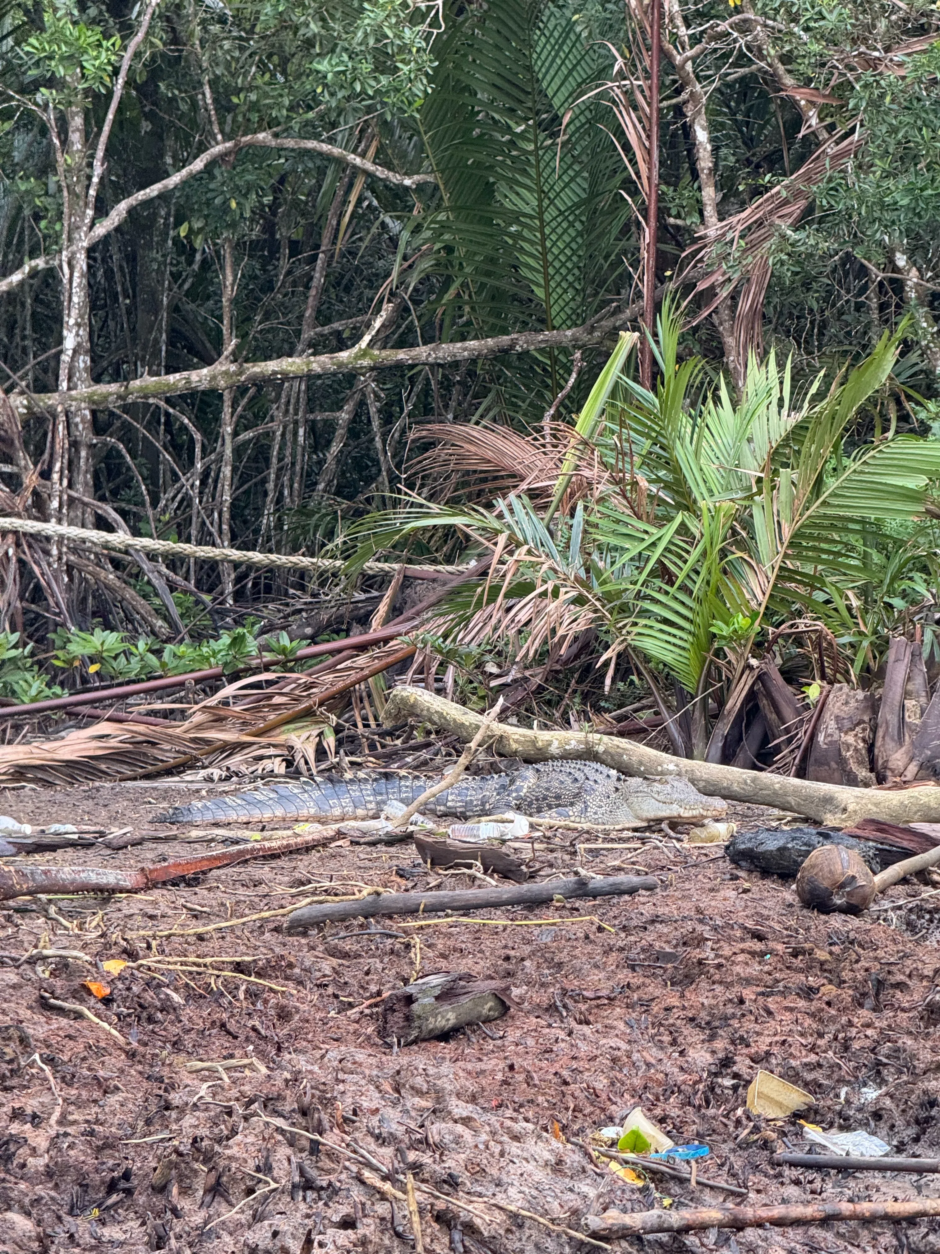 A saltwater crocodile rests on the river bank. (Photo: Zawani Abdul Ghani)