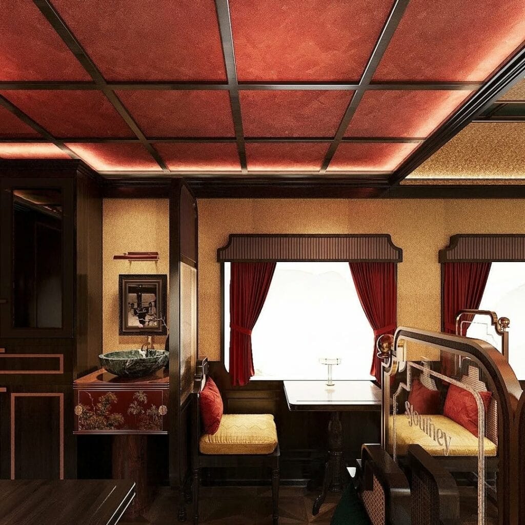 Each carriage cultivates an enduring story of culture and craftsmanship whereby heritage is embellished by haute design. Inside, lavish cabins serve as tranquil sanctuaries, adorned with fine detailing, contemporary comforts, and subtle touches of Vietnamese artistry. And beyond the comfort of private suites, guests can indulge in soothing massages, or unwind within its stylish lounge, an intimate space designed for reflection and repose.