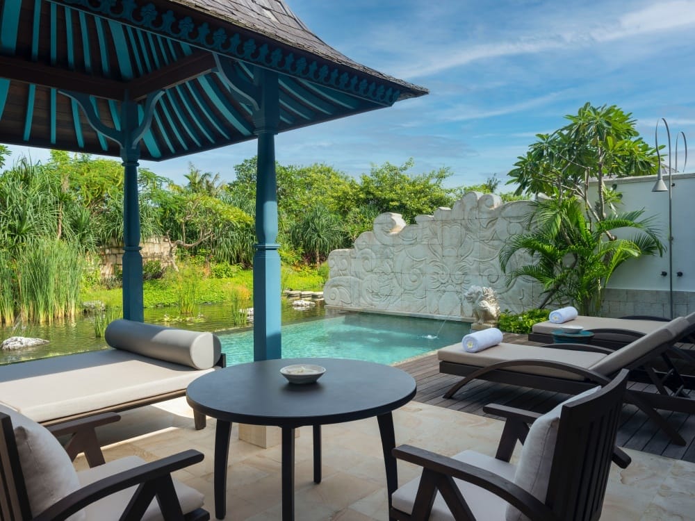 The luxurious resort offers 123 villas in one- and two-bedroom designs, as well as a four-bedroom Royal Water Palace. All villas feature sublime tropical views of the Indian Ocean and mesmerising lush green natural beauty of Bali. Each villa has a private pool and outdoor living area with an open pavilion overlooking the sunset horizon or a landscaped tropical garden.