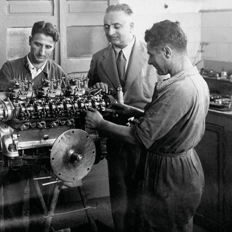The very first Ferrari out of the factory doors was the 125 S, built by Enzo Ferrari specifically to win races. Ferrari himself was a racecar driver up until 1931, when he left the circuit as a result of the impending birth of his son Alfredo, better known as Dino. After World War II, in 1945, Ferrari began work on designing his first car and, just two years later, he takes the very first one with the official Ferrari badge – the 125 S – for a test drive around the streets of Maranello.
