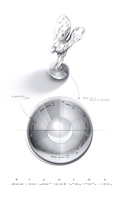So, to help its clients along, Rolls-Royce has revealed the answer to the code scribed onto the Wraith’s unique Spirit of Ecstasy emblem. Apparently, it conceals the word “Kryptos” in coded cipher. Similarly, the embroidery on the headrests translates as the double-R monogram, also rendered in the cipher.