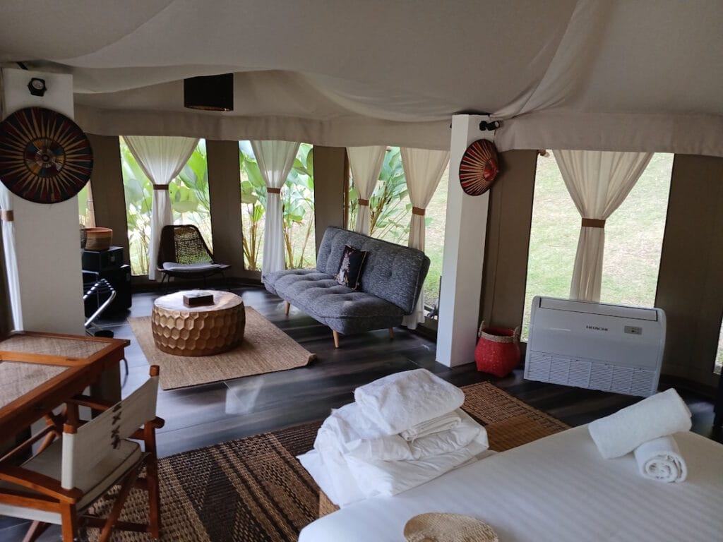 For in seek of adventure there are jungle treks, ATV rides and river tubing nearby. At dusk, a ceremonial lighting of the grand bonfire on the amphitheatre lawn gathers guests together — a glowing, communal moment that captures the magic of glamping at its best.