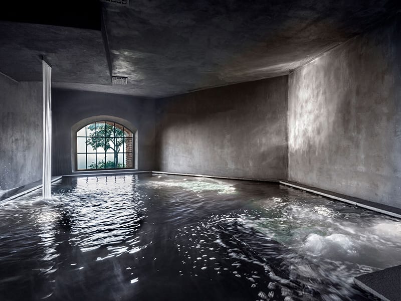 Here resides, among others, an award-winning restaurant, a culinary academy, a separate enoteca and library bar, and a beautifully restored 700-year-old Romanesque church that serves as the hotel’s performing arts venue.