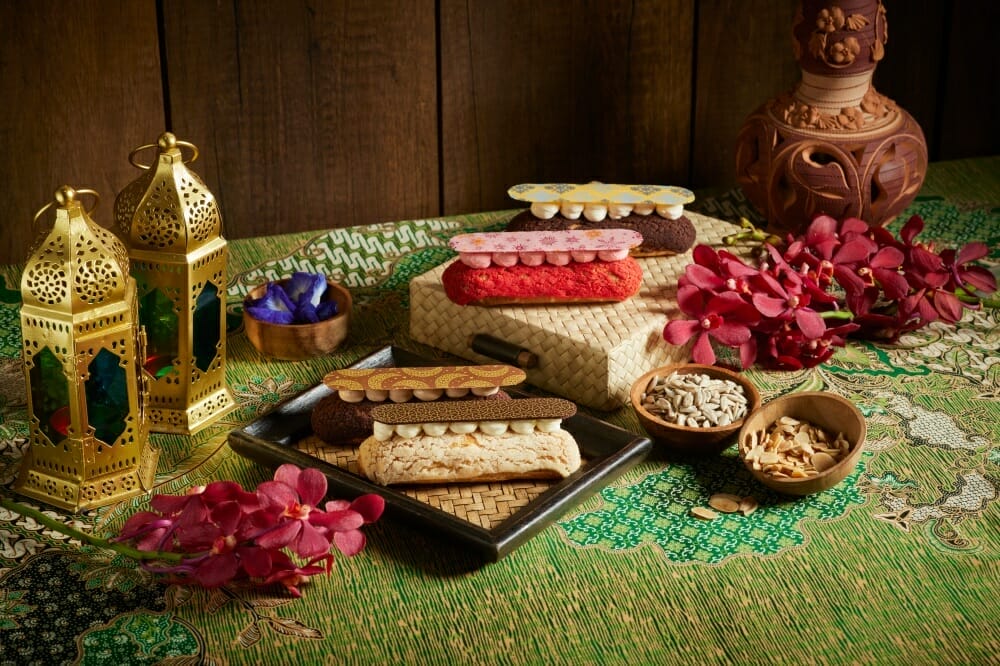 Pre-order the Warisan Melayu Signature Sambal Box, Warisan Melayu Sweet & Savoury Box of Chicken Serunding Butter with Spring Onion, Gula Melaka Caramel Spread and more. The Warisan Melayu Sambal & Jeruk Box, Warisan Melayu Éclairs with special flavours of “Caramel Dulcey ‘Bunga Telang’ Butterfly Pea Flower & Smoked Banana” and a selection of Warisan Melayu Cakes and Cookies.