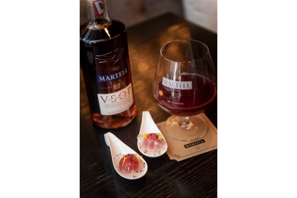 We urge you to stay till the last platter of Tapas has made its rounds as that is when the pièce de résistance of the evening begins. At the bespoke Martell Trunk in Babe, Chef Jeff Ramsey will tour groups of people through a series of interactive sensorial gastronomy experiments and curiosities that will leave you feeling satisfied yet wanting more, we guarantee it.